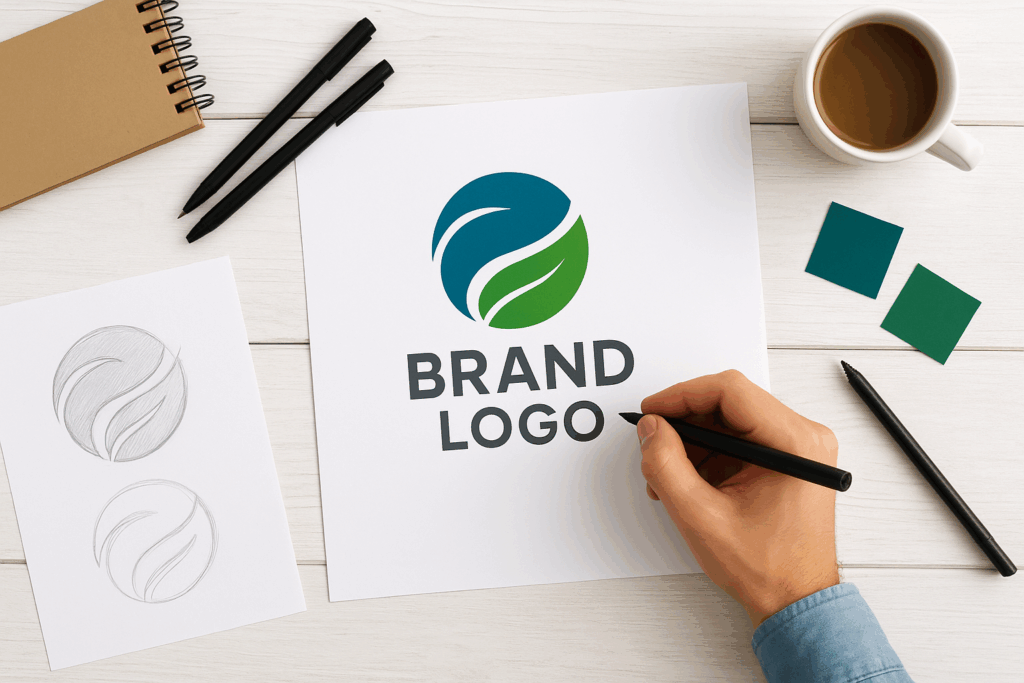 Image idea: Show a designer working on a logo sketch or digital logo mockup.